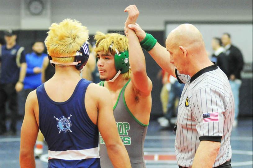 •Sanchez (30-3) reeled off three consecutive pins to advance to the 215-pound championship match against Poway’s Robert Platt. The Aztec mat warrior pinned Rancho Bernardo’s Anak Rodriguez in 34 seconds in his first match, then pinned Central Union’s Isaiah Aguirre in 2:00 in the quarterfinals.