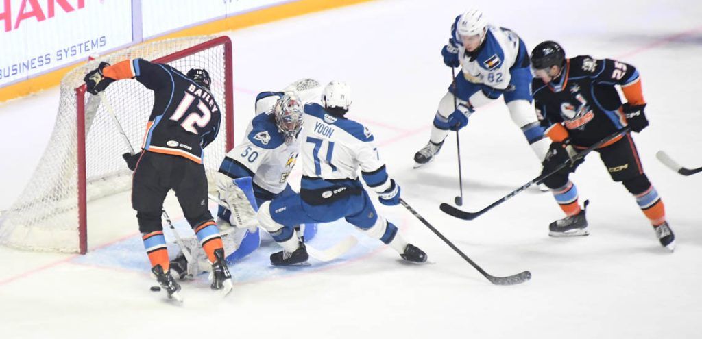 With the series switching to Colorado for two games to wrap up the teams’ four-game series, there was the ominous prospect of a four-game sweep by the Eagles that could severely damage the Gulls’ playoff chances, especially with San Diego holding a tenuous one-point lead in the standings over the Tucson Roadrunners for the division’s final playoff berth.