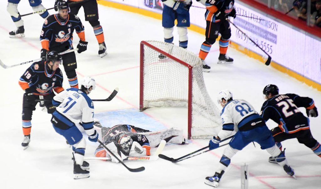 Nikita Nesterenko gave the host a 1-0 lead early on with a deflection at 9:33 of the opening period, assisted by Coulson Pitre and Luneau. The visitors tied the score on a power play goal by Puustinen at 16:58 of the second period. Assists went to Barre-Boulet and AHL scoring ace T.J. Tynan.