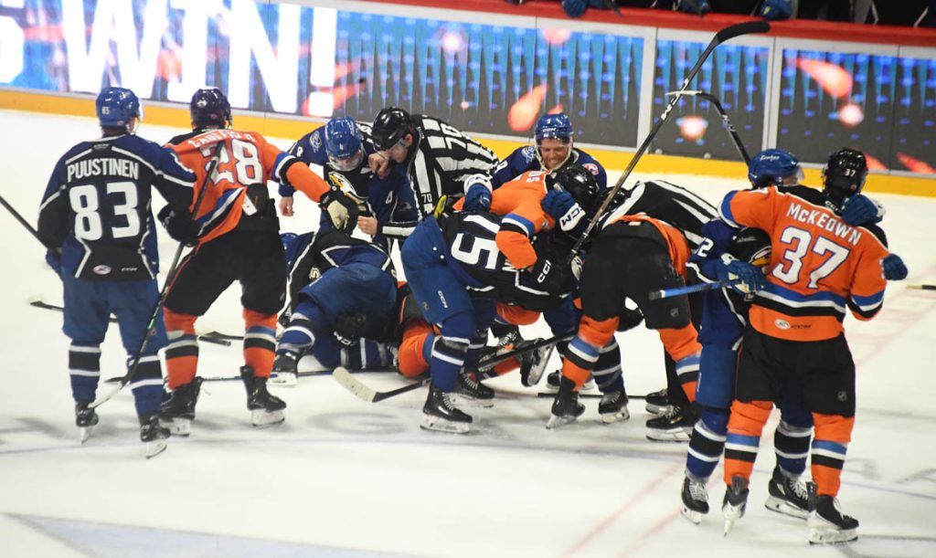 The game ended with a melee at center ice between the teams. The Eagles obviously didn’t like losing to the Gulls.