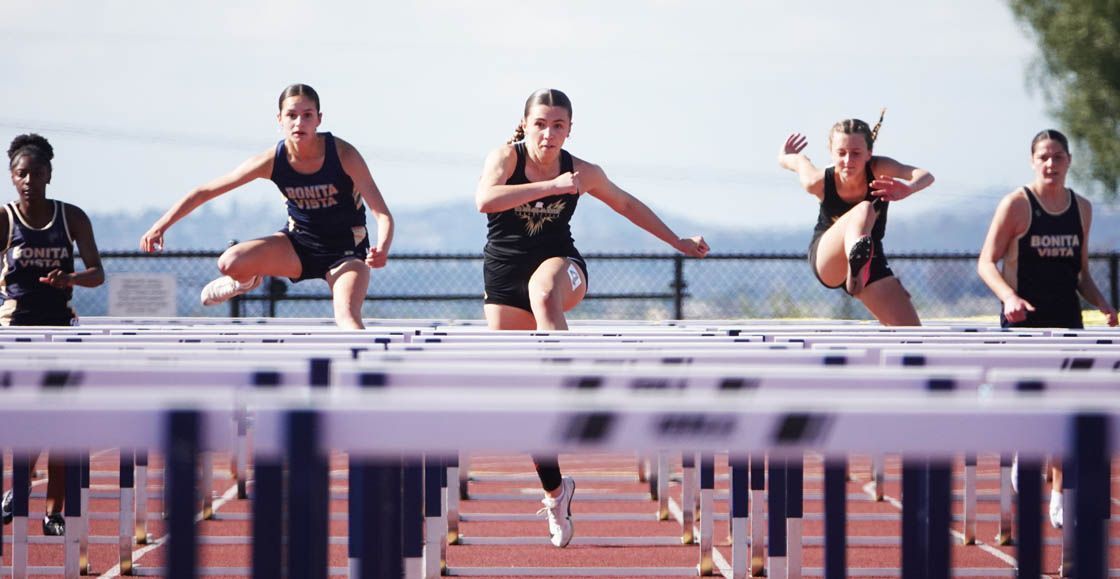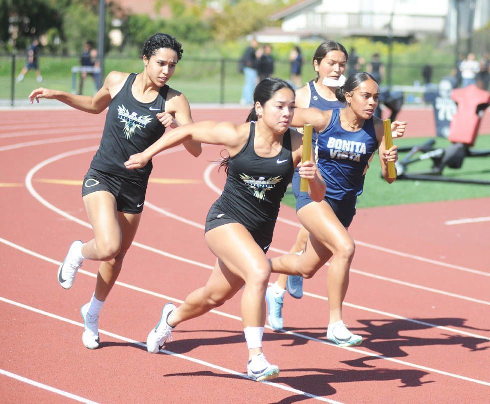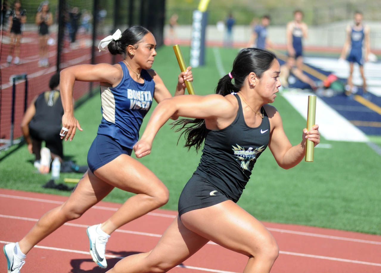 G4x100R: 1. Olympian (Andrea Villarreal Enciso, Sarai Rodriguez, Gabrielle Hawkins, Aubrey Tibayan) 48.31; 2. Bonita Vista (Christina Harris, Jamiya Marie Valenciano, Mia Ramirez, Sofia Garay) 48.72