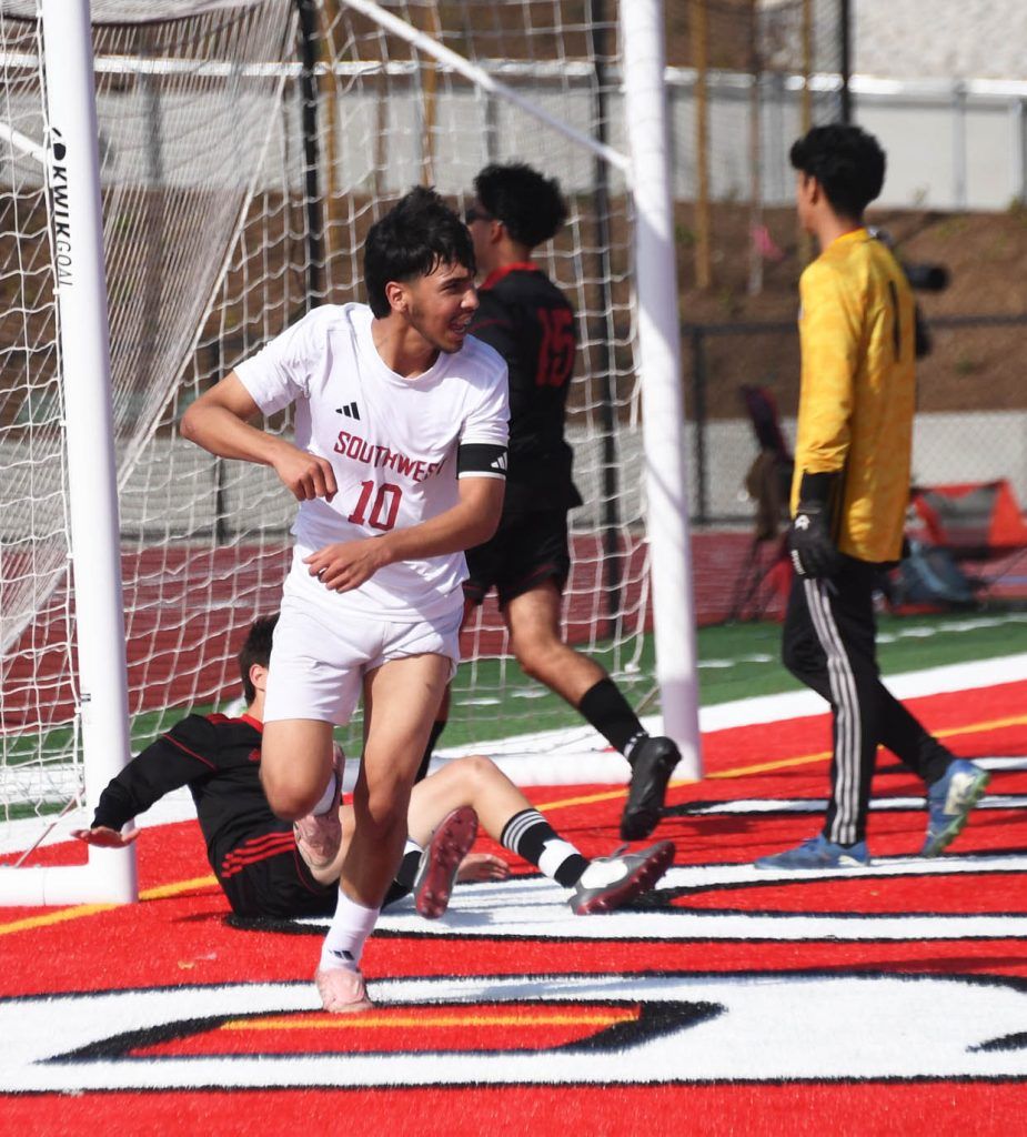 Southwest senior Bryan Silva scored the first goal in the new stadium, actually three of them as he finished with a hat trick.