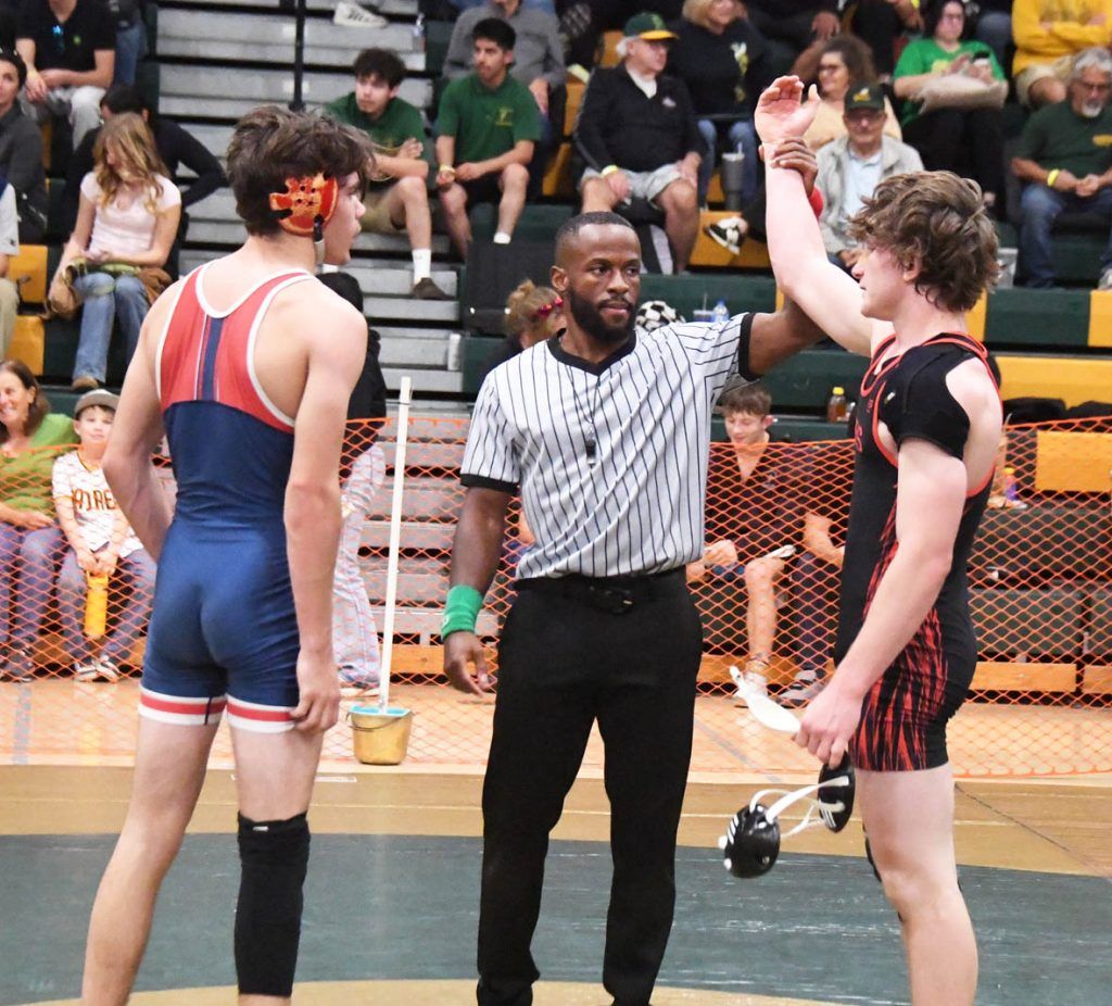 South County remained in the spotlight in the next match at 113 pounds as Mar Vista second-year Ayden Pendergraft (20-10) recorded a 15-9 decision over Christian sophomore Samuel Larson.