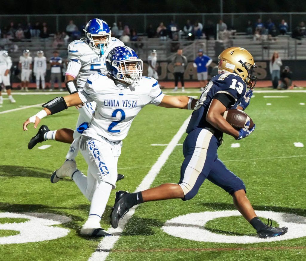 For Chula Vista, offensive leaders included junior Gabriel Ruiz (17 carries, 73 yards), junior Elijah Richardson (nine carries, 61 yards) and senior Isaiah Heard (14 carries, 52 yards). Defensive leaders included senior Darrion Frisson (seven tackles), senior Julio Andrade (three tackles for losses, one sack) and senior Daniel Marquez (one interception).