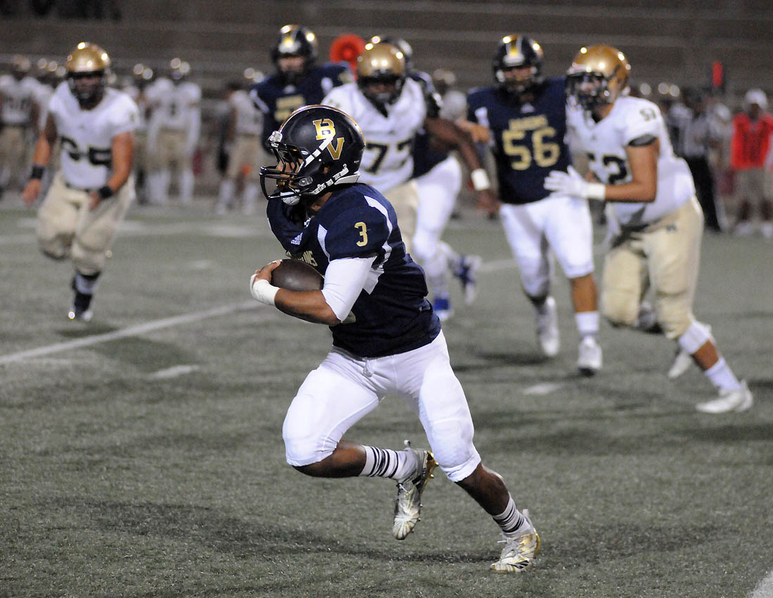 Mar Vista head coach Tyler Arciaga said he is pleased with the backfield one-two punch of Jacob Galeana (570 rushing yards, nine touchdowns) and Hassan Spruill (560 rushing yards, seven touchdowns). He added that receivers Marcelino Maclang and Marcus Ramirez have been productive in the run and pass game while quarterback Alex Gutierrez has done a solid job managing the offense.