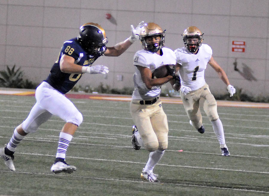 Calvert scored on a 32-yard run with 5:24 left in the first quarter to ignite the scoring in last Friday’s game at Southwestern College. He tacked on a 37-yard touchdown after breaking loose on a screen pass to double the Mater Dei Catholic lead to 14-0.