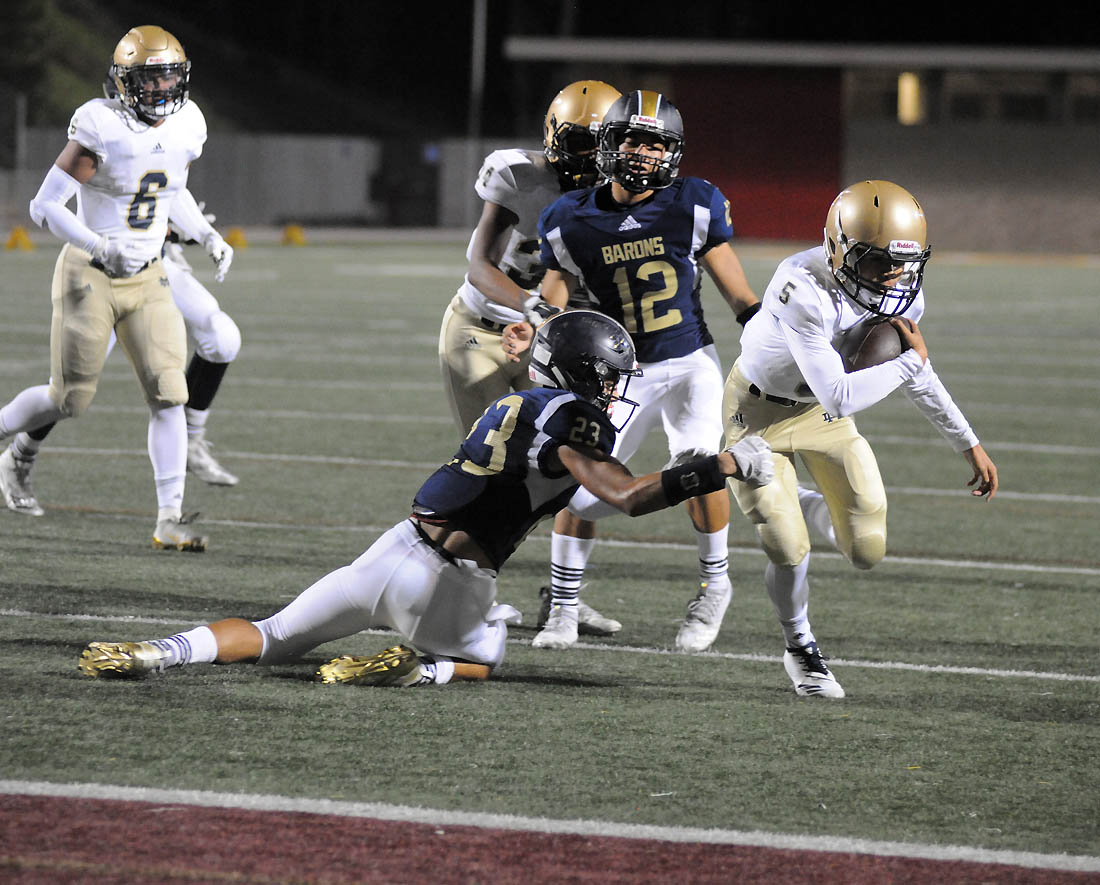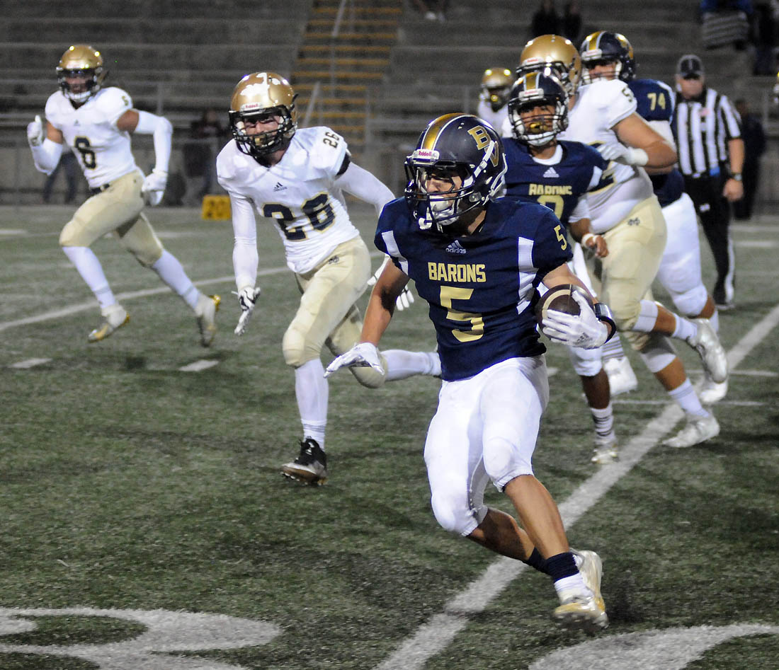The Crusaders forced the Barons to punt from their own end zone with the visitors taking control of the ball at the BV 38-yard line. Jayden Flores later scored on an eight-yard run with 8:51 left in the third quarter.