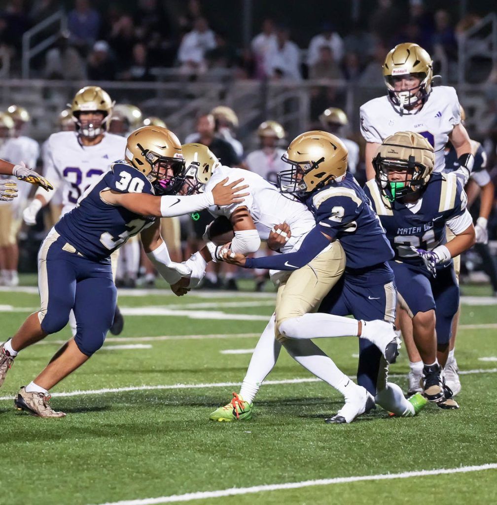 Senior Noah Cook paced Mater Dei Catholic receivers with seven catches for 103 yards and one touchdown while junior Diego Mendoza had four catches for 46 yards. Dumaran also had two catches for 27 yards to finish the game with 263 all-purpose yards