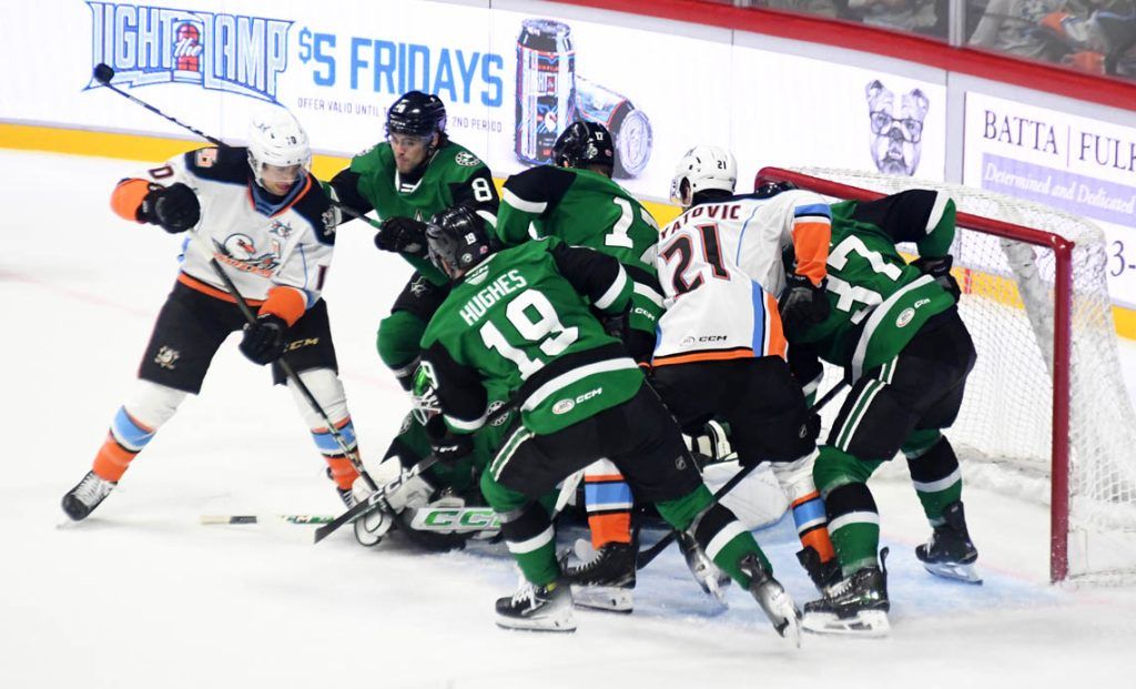 Goalscorers in Wednesday’s game included Judd Caulfield and Justin Bailey while Sasha Pastujov and Ryan Carpenter each recorded assists and goaltender Calle Clang backstopped his second consecutive win with 32 saves on 33 shots.