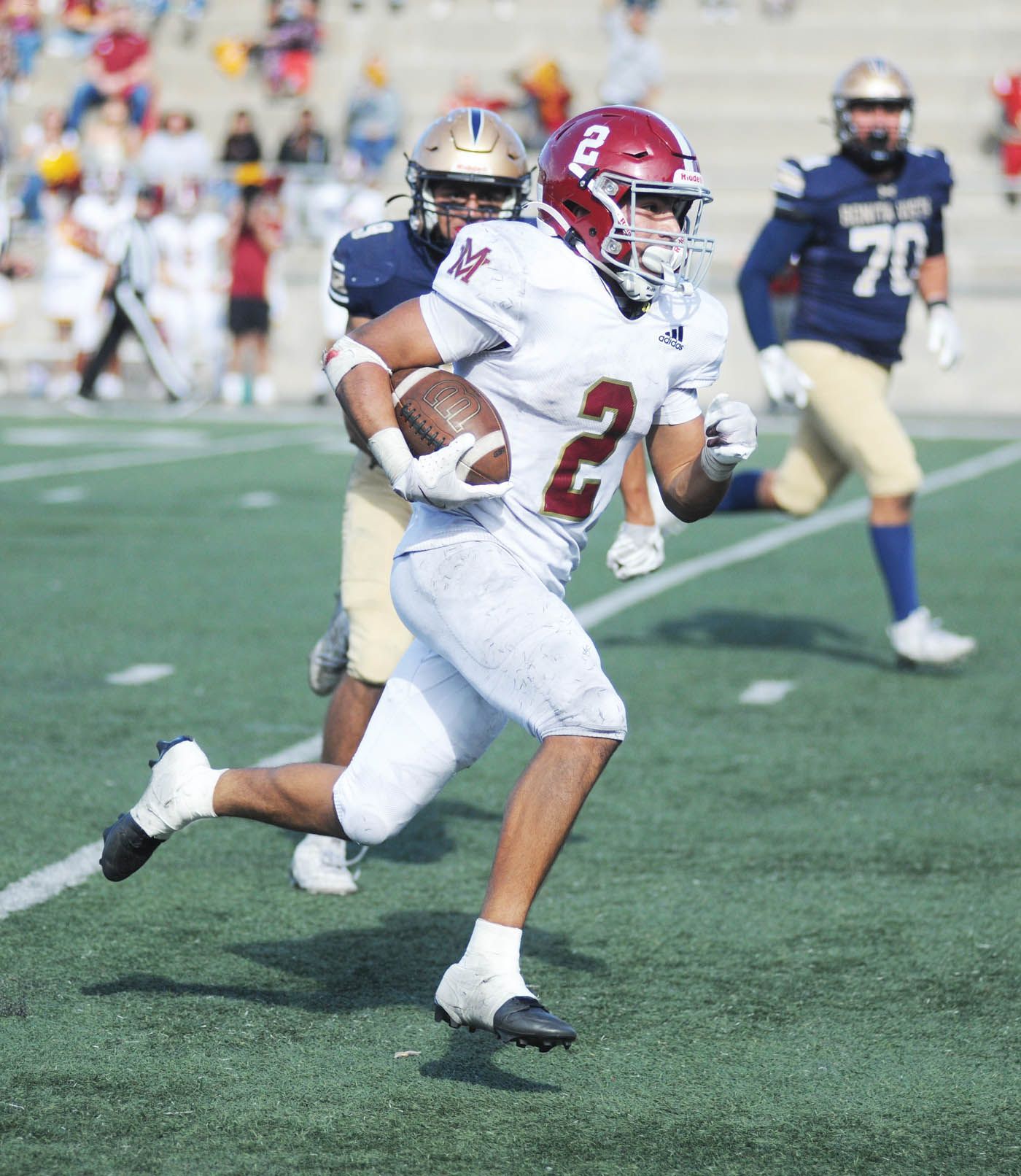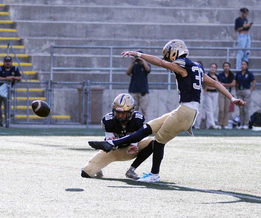 The Saints never trailed in the game, opening up a 13-0 halftime advantage on a pair of field goals — 23 and 25 yards — off the foot of freshman Callan Moore and a one-yard run on a direct snap by sophomore safety/running back Paisio Polamalu.