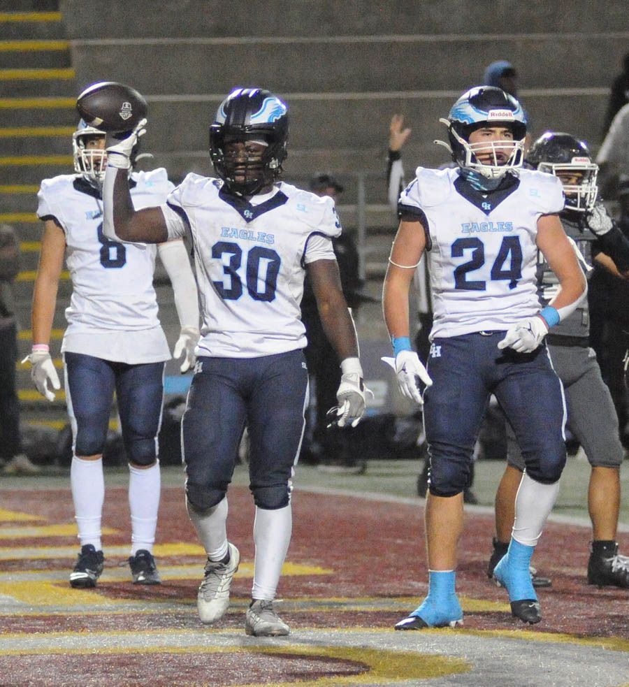 The Granite Hills Eagles scored a rare championship three-peat by capturing this year’s Division I championship on Saturday night to cap the five divisional games at Southwestern College. In doing so, the second-seeded Eagles upset the top-seeded San Marcos Knights, 42-25, in nothing short of a thrilling contest.