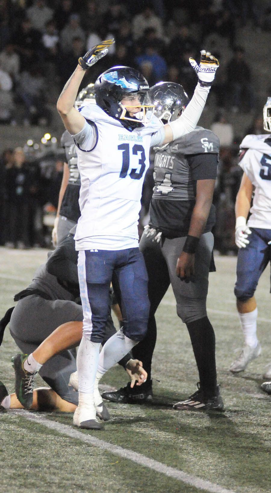 The Eagles never trailed in Saturday’s marquee clash against San Marcos, leading 21-0 midway through the second quarter, before the Palomar champion Knights responded with three unanswered scores of their own to narrow the score to 21-18 early in the third quarter.