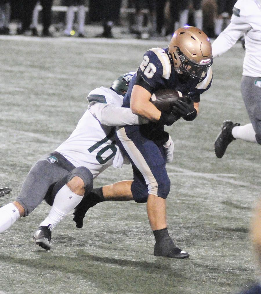 Senior Brady Pohl was a catalyst for the Knights with 134 yards on kick returns and 67 receiving yards. His weaving 99-yard kickoff return narrowed the score to 21-18 with just 15 seconds off the clock to start the second half.