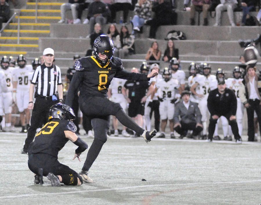 Senior Brayden Ford split the uprights on a 26-yard field goal with 8:02 remaining in the game to nudge the Vaqueros in front, 17-14, on the scoreboard.