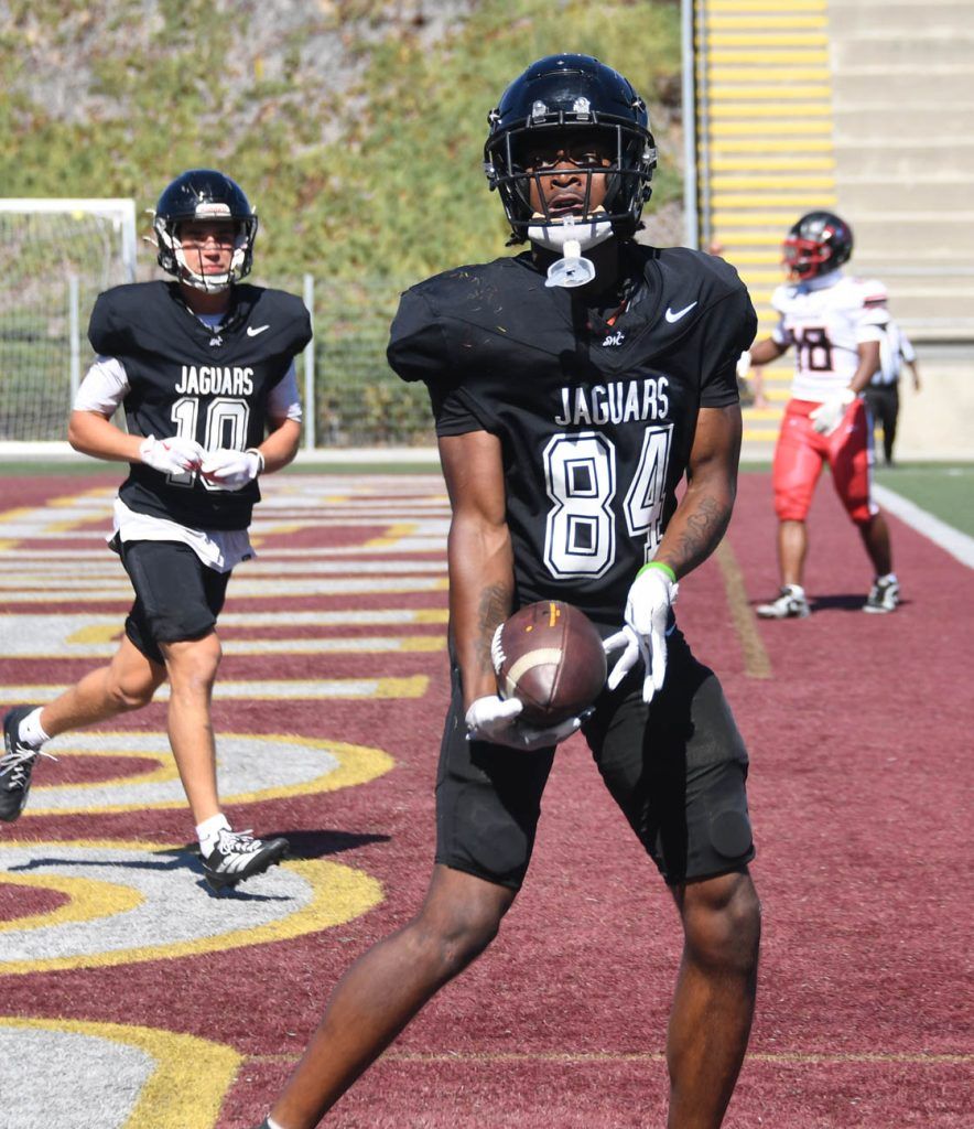 After recording a 26-24 non-conference victory against visiting College of the Canyons on Aug. 30, the Jaguars have defeated, in order, Orange Coast College (71-10 on Sept. 6 on the road), Long Beach City College (38-14 on Sept. 13 on the road) and Mt. San Jacinto College (31-10 last Saturday at home).