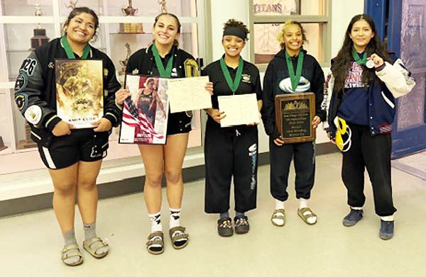 The Lady Eagles had four finalists, including three weight class champions: Madelyn Hogue (142 pounds), Natalia Righellis (145 pounds) and Elisa Najera (235 pounds).