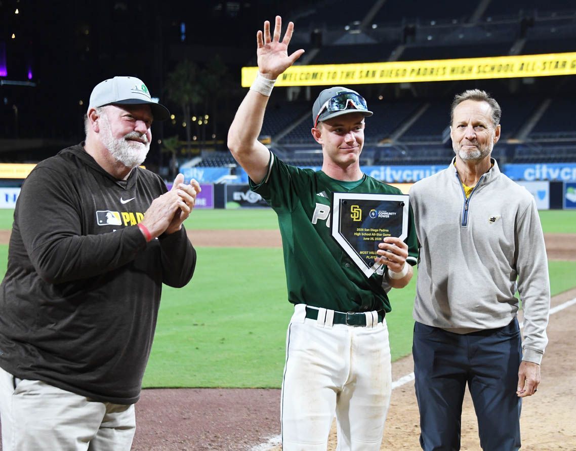 The San Diego Padres’ seventh annual High School All-Stars Night took place June 25 at Petco Park. The “big league” feel had an impact on the participants as La Jolla Country Day senior Jackson Norum clubbed a home run for the West team and Poway junior outfielder Parker Smith earned MVP honors with a RBI single, double, walk and two stolen bases in the East team’s 8-3 victory.