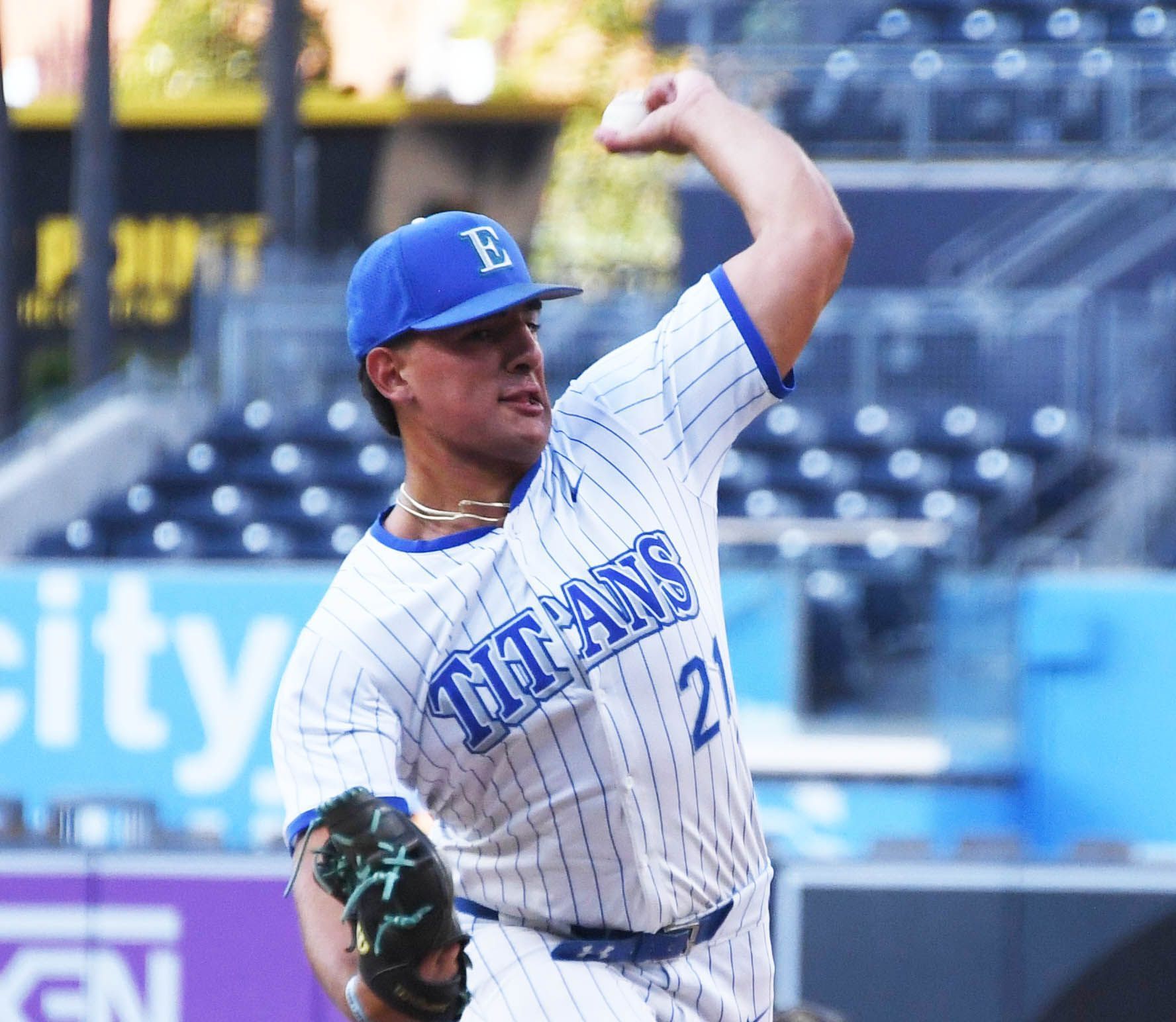 Eastlake senior Nick Romero pitched the top of the third inning, yielding one run on a double by La Jolla senior Hank Hansen and a sacrifice fly by Del Norte senior Liam O’Day to trim the East lead to 3-1.