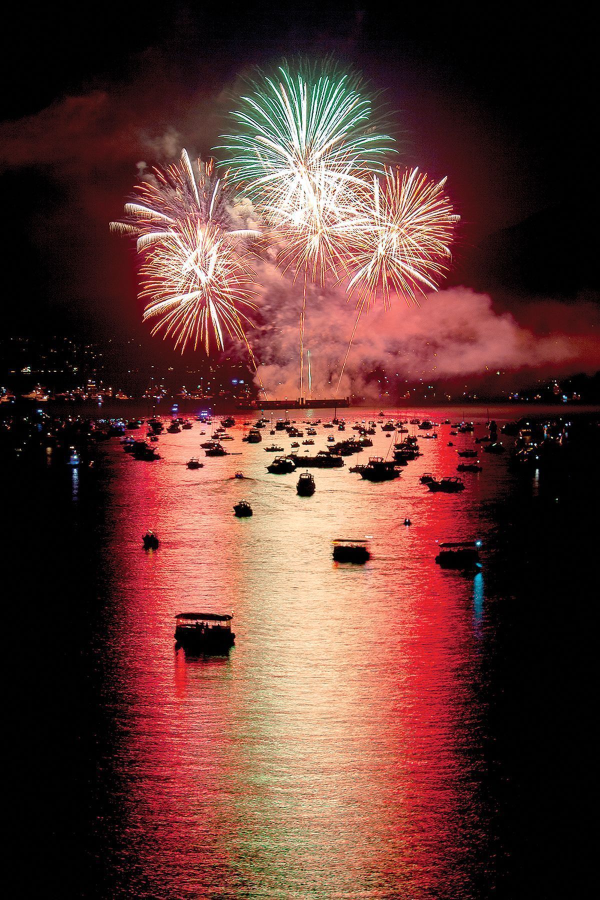 Location: Fireworks launched simultaneously from four barges on San Diego Bay.