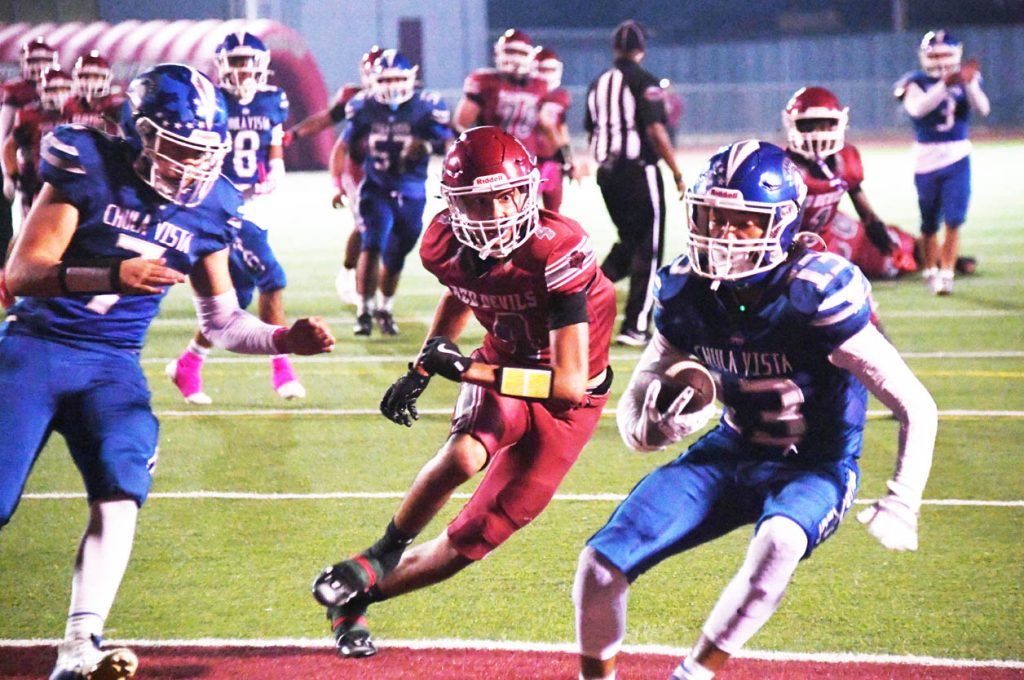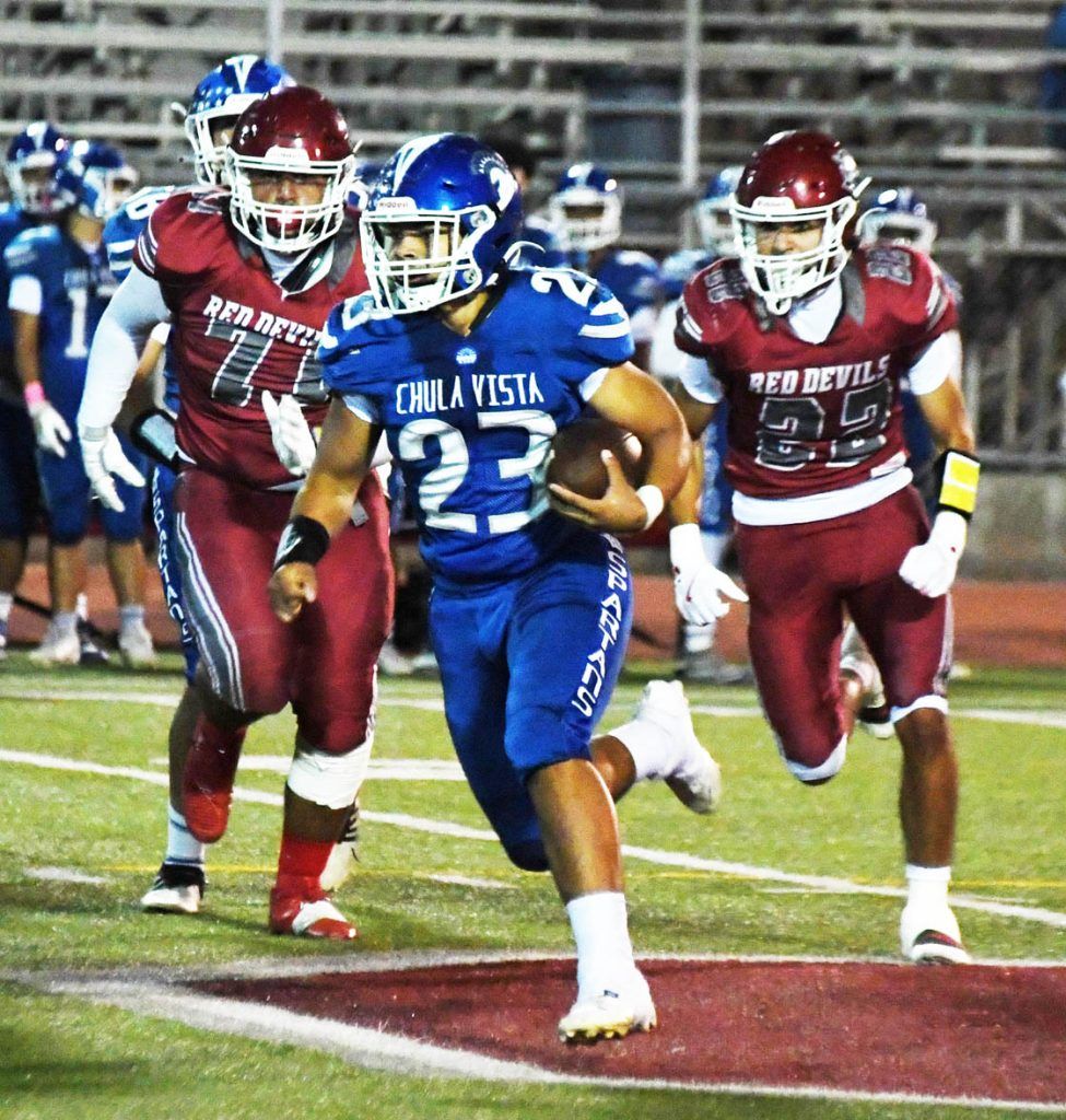 Carlos was the man of the match with 25 tackles, including 15 unassisted stops. Senior Julian Martinez had the pick for Chula Vista while junior Elijah Richardson blocked both punts.