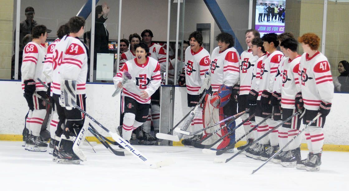 The San Diego State University men’s ice hockey team thus carried a 4-23-0-1 overall record with 22 consecutive losses to Western Collegiate Hockey League opponents into its season-ending non-conference game against crosstown rival UC San Diego on Feb. 22 at the Kroc Center Ice Arena.