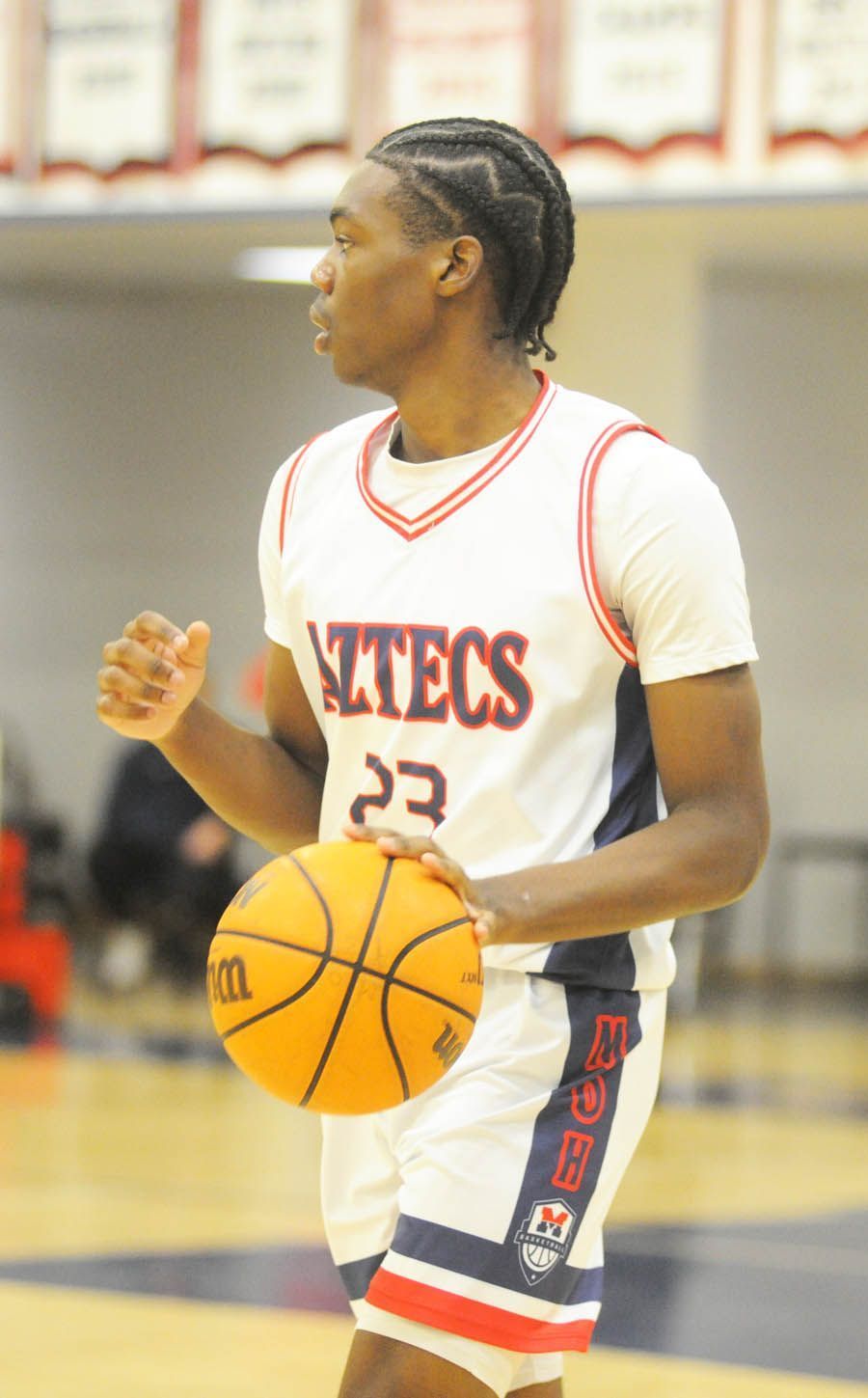 Montgomery opened the game with a 12-9 scoring edge in the first quarter, but the Aztec lead was reduced to one point — 20-19 — by halftime and evaporated altogether as the Lancers (25-6) started the second half with a 12-8 run to take a 31-28 lead on the scoreboard.