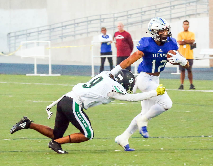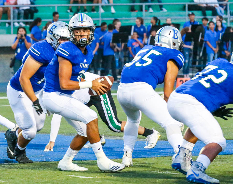 Eastlake High School’s football team was shut out in its first game of the season against Torrey Pines. In their second game of the season against Hilltop last Friday, the Titans scored 21 points in the first quarter en route to recording a 57-7 non-league win to give them their first win of the new season.
