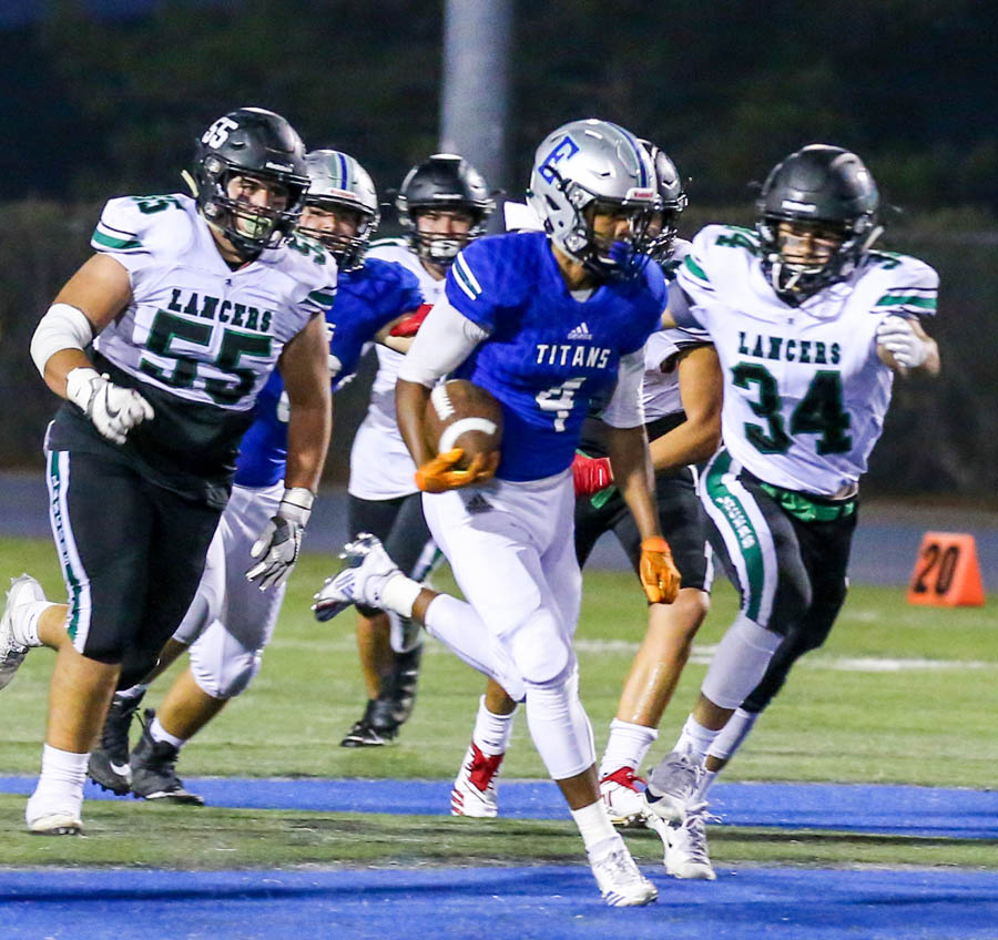 - The Titans scored seven rushing touchdowns — one each by McCoy, Hernandez, Roman Coe, Darius De Los Reyes, Mateo La, Hinojosa and Ertzner. D.J. Del Fierro totaled nine kicking points – six (of seven) PAT conversions and one field goal.