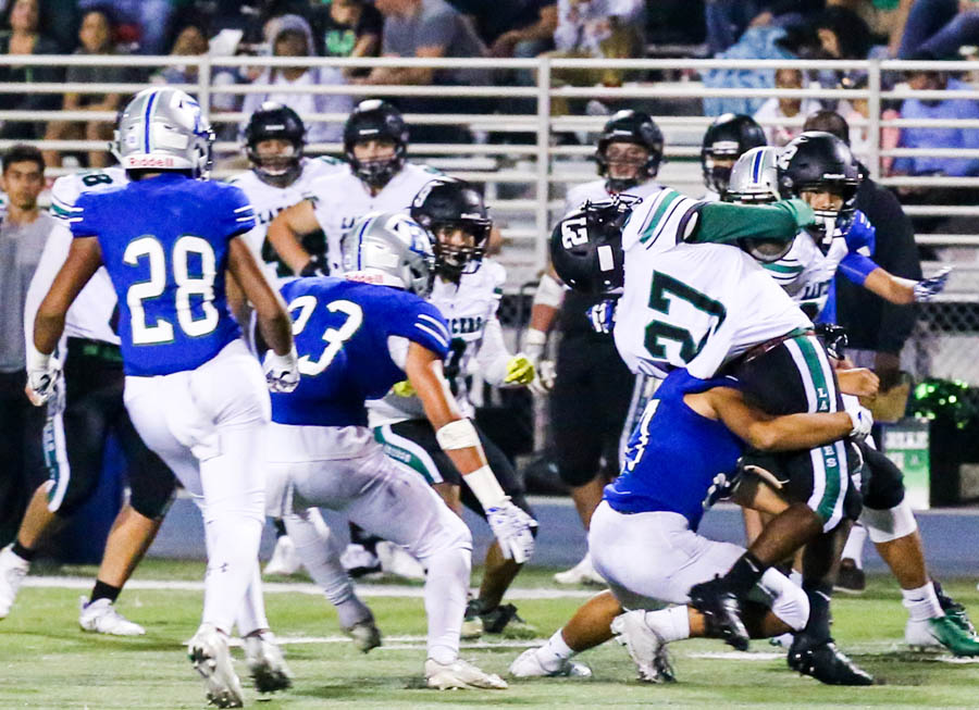 Just like in the game against Torrey Pines, Eastlake’s defense was stout all night long against the Lancers. Hilltop quarterback Joey Castillo came out throwing 52 times for 230 yards but was held to one touchdown.