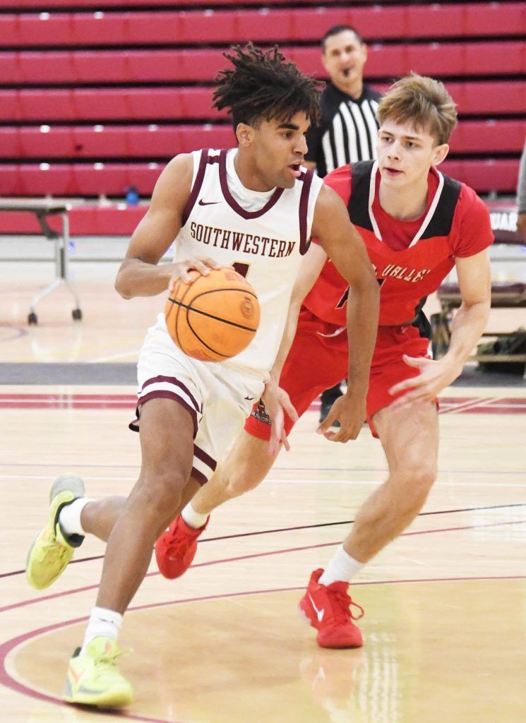 Southwestern overcame a 38-32 halftime deficit on the road to swamp Riverside City (17-12) by a score of 47-36 in the second half. Granite Hills and Victory Christian alum Derek Edmond paced the comeback win with 33 points while two other Jaguars reached double digits: Christian Gamboa (19 points) and Tres Luzey (15 points). Edmond and Gamboa each had eight rebounds to lead SWC.